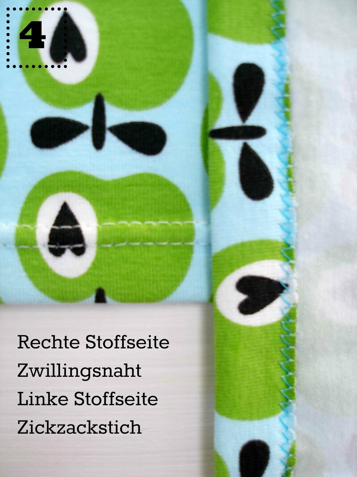 (beim nähen ergibt sich so automatisch auf der linken Stoffseite ein Zickzackstich, siehe Bild 4)